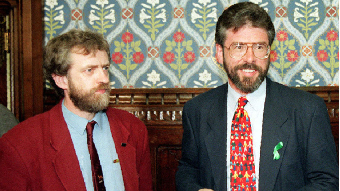 Mr Corbyn and Mr Adams at a Sands/Connolly event