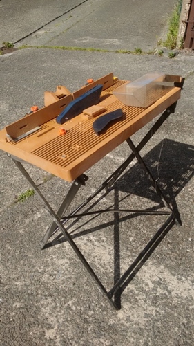 Works OK for occasional jobs. Folds flat for storage. All sorts of attachments for cutting straight or angles.