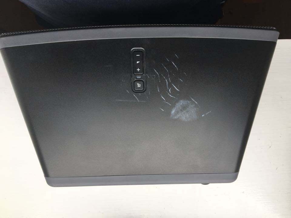 There are a couple of cosmetic marks on the top of the speaker, and it’s missing one of the little rubber things from underneath. I’ve included pictures so you can see those marks. Other than that it’s absolutely great.