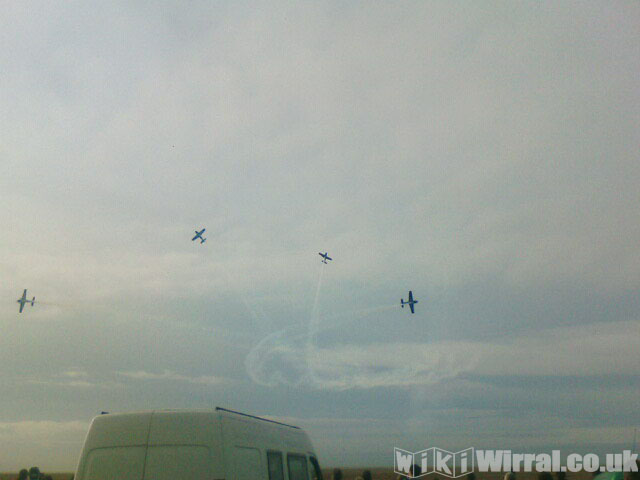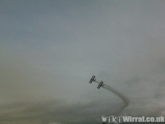 there was two girls stood on top of them biplanes and at one point they unhooked themselves from the rig and were just sitting on the top wing as they did a fly past before getting into the cockpit....girls with balls of steel lol