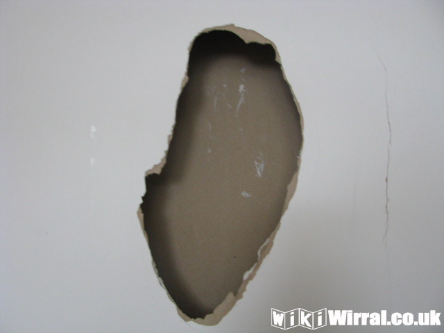 Nice hole! Not a prob bud, shouldn't be a prob to fix. I'll have to make the hole bigger though as it seems to of cracked the plaster board along the stud in the wall. I assume you'll be painting it afterwards?
