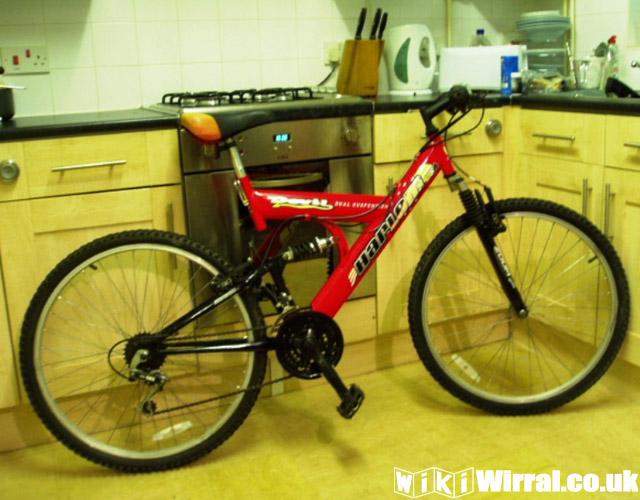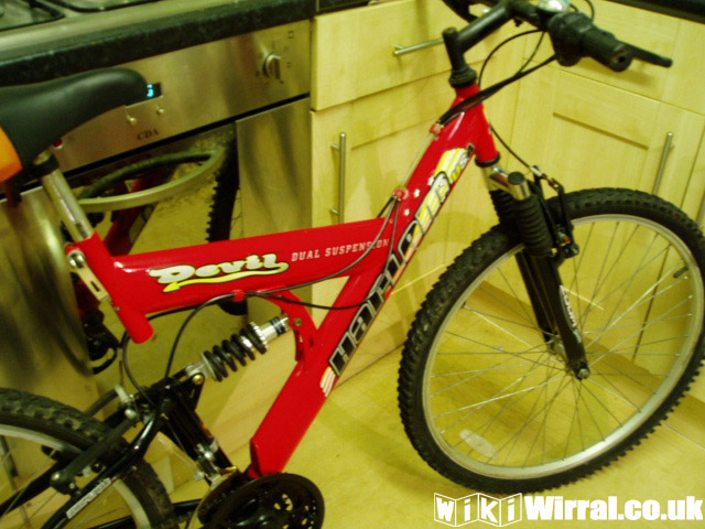 Harlem Devil, Dual suspension, 18 gears, 26 inch wheels, Has small rip in seat, £35.