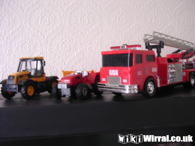 HI, EVERYONE i got some more items for the layout to HELP the staff/crew with the building/etc we have another FIRE ENGINE thats THREE the M.A.R RAILWAY/VILLAGE has, so at least there no chance of a FIRE THEN or more gas leaks? (bert ). I also got a J.C.B TRACTOR AND TRAILER to help the crew with building the layout/village/railway and an ordinary TRACTOR to help at the farm when i get round to building it cheers mike... hammer camera hi oldman
