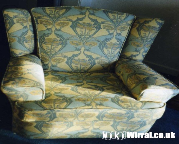 23 metres of blue/biscuit coloured upholstery fabric. Sufficient to cover an average size sofa and armchairs.
