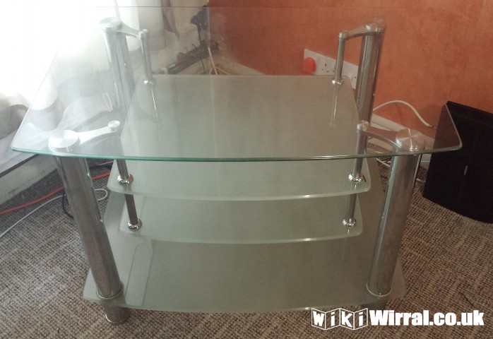 Clear Glass & Silver TV Stand.