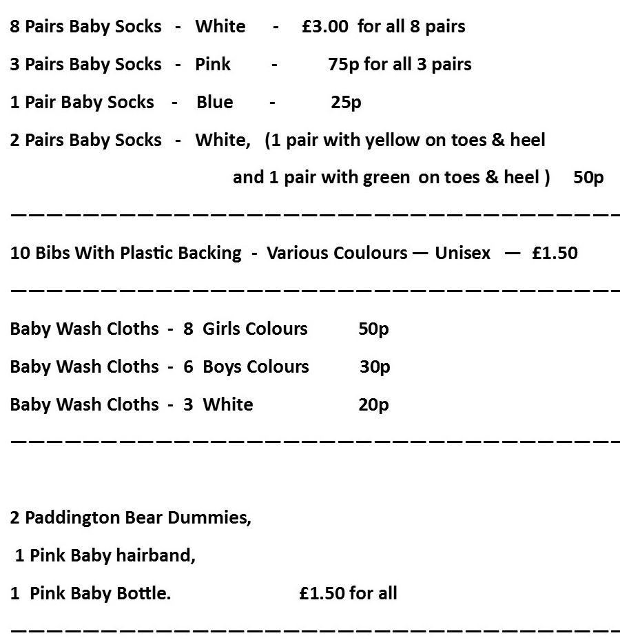 More various baby items. You are welcome to buy from between 1 to all the items.